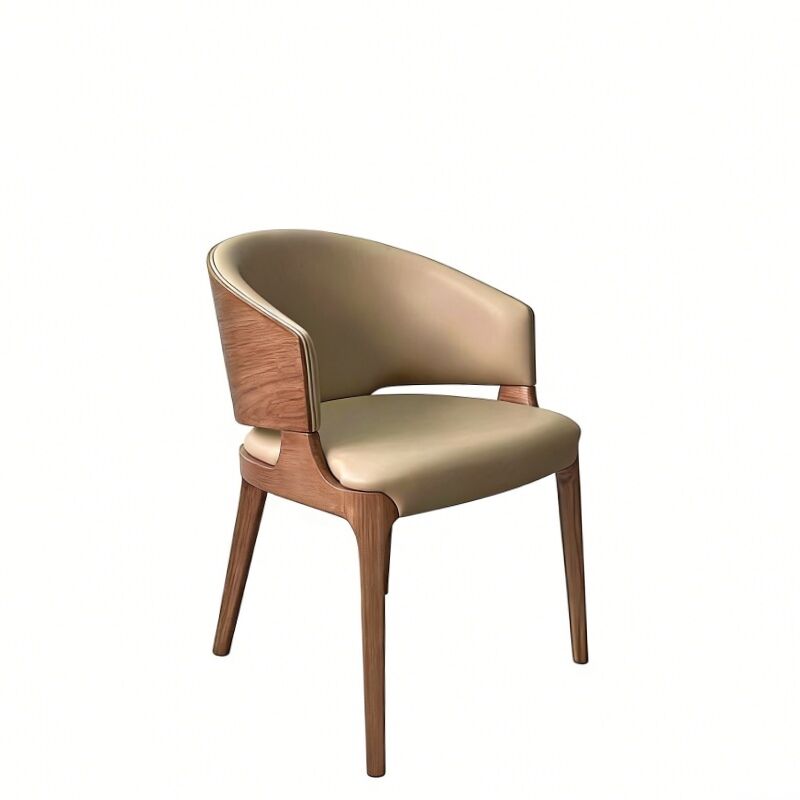 Round leather seater wood restaurant chairs oak wood comfortable armless dining chair