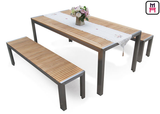 Plastic wood outdoor restaurant tables commercial KD outdoor use bench set patio furniture set