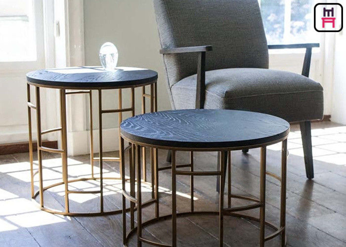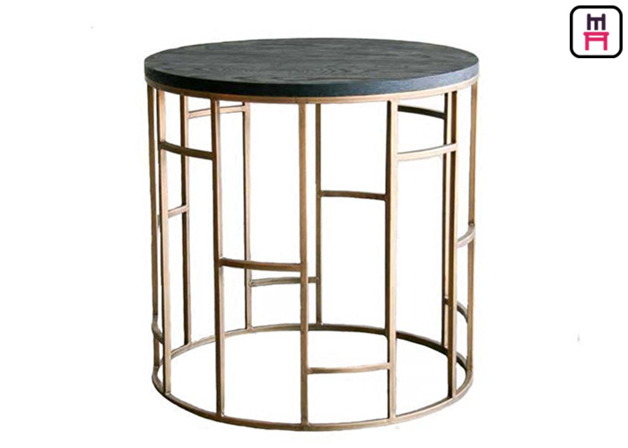 Nodric design hollowed-out round custom made wood top stainless steel coffee table