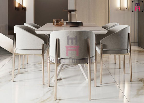 Grey Velvet Shell Back Stainless Steel Dining Chair With Armrests